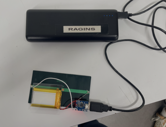 A solar-powered USB charger that stores and delivers renewable energy: this circuit uses a photovoltaic panel to charge a 3.7 V lithium-polymer battery and a DC–DC converter to boost the voltage to a steady 5 V output. The charger features a protected LiPo cell, regulated current flow, and insulated housing to prevent overheating or damage. Built through soldering and precise circuit layout, the project highlights efficient power conversion and practical energy storage design.